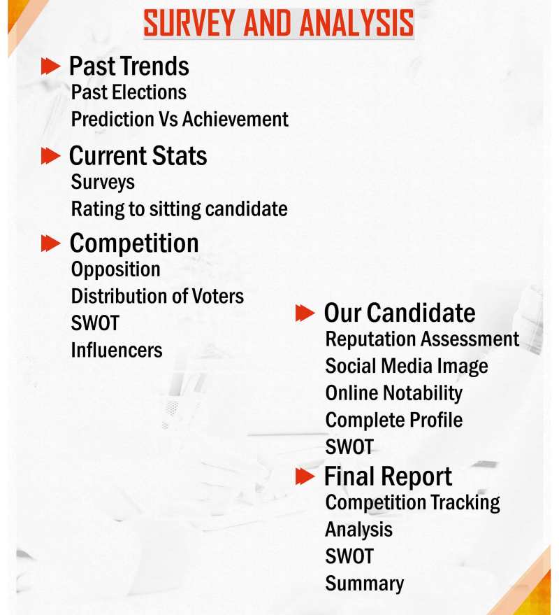 Offline anf Online survey to Know ground facts and other insights by establishing dialogue at polling booth level.